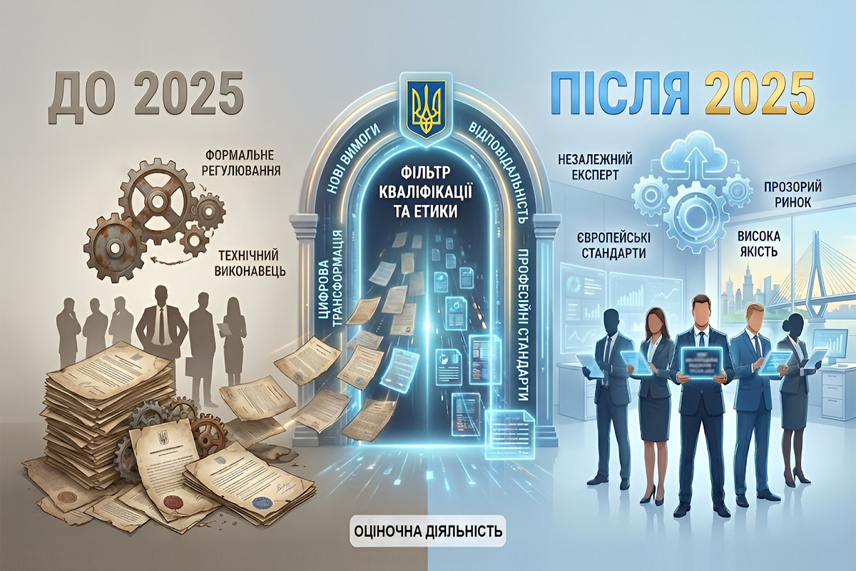 Оціночна діяльність в Україні у 2025 році увійшла в етап глибокої трансформації, який багато експертів уже визначають як наймасштабніший з моменту формування чинної системи державного регулювання цієї сфери. Йдеться не про фрагментарні зміни чи косметичні коригування нормативно-правових актів, а про комплексне реформування самої логіки функціонування професії оцінювача. Зміни торкнулися підходів до доступу на ринок, вимог до професійної підготовки, стандартів етичної поведінки, механізмів контролю та рівня персональної відповідальності фахівців. У сукупності це свідчить про спробу держави не лише впорядкувати галузь, а й суттєво підвищити довіру до результатів оцінки з боку бізнесу, судової системи та суспільства загалом.